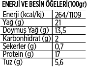 İçindekiter : Pastörize inek sütü, peynir mavası (şirden) ve tuz